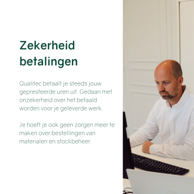Ben je graag je eigen baas en wil je bij ons aan de slag als onderaannemer zonder onnodige kopzorgen over het opmaken van offertes en facturen, het bestellen van materialen of het beheren van je stock? Werken voor Qualitec betekent dat je fulltime kan bezig zijn met jouw vak, jouw passie.